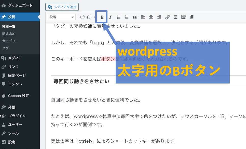 実は太字は「ctrl+b」によるショートカットキーがあります。