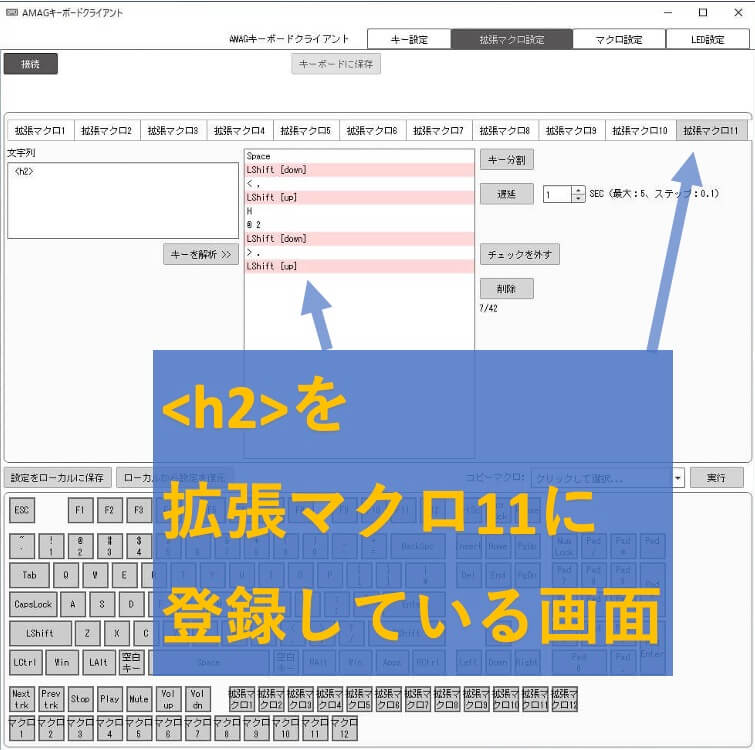 このキーボードにあらかじめ「<h2>」を登録しておけば、ボタンを1回押すだけで済むのです。