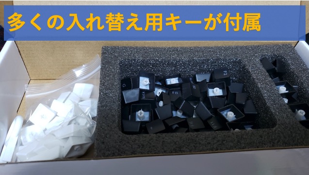このキーボードでは、印字されたボタンを入れ替えできるので、覚えやすくして対応しています。